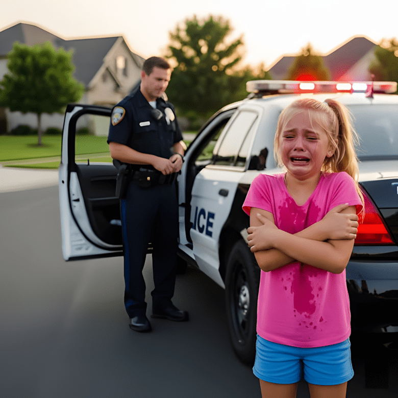 Agent Daniel Harris bevroor even. Hij had kinderen eerder zien huilen, maar er was hier iets anders—iets urgents in de trillende stem van het meisje dat dieper ging dan elk routinegesprek dat hij had afgehandeld. De zon ging onder achter de rustige buitenwijk en schilderde de hemel oranje en roze, maar de schoonheid van de avond voelde wreed tegen de aanblik van de wanhoop van dit kind.
