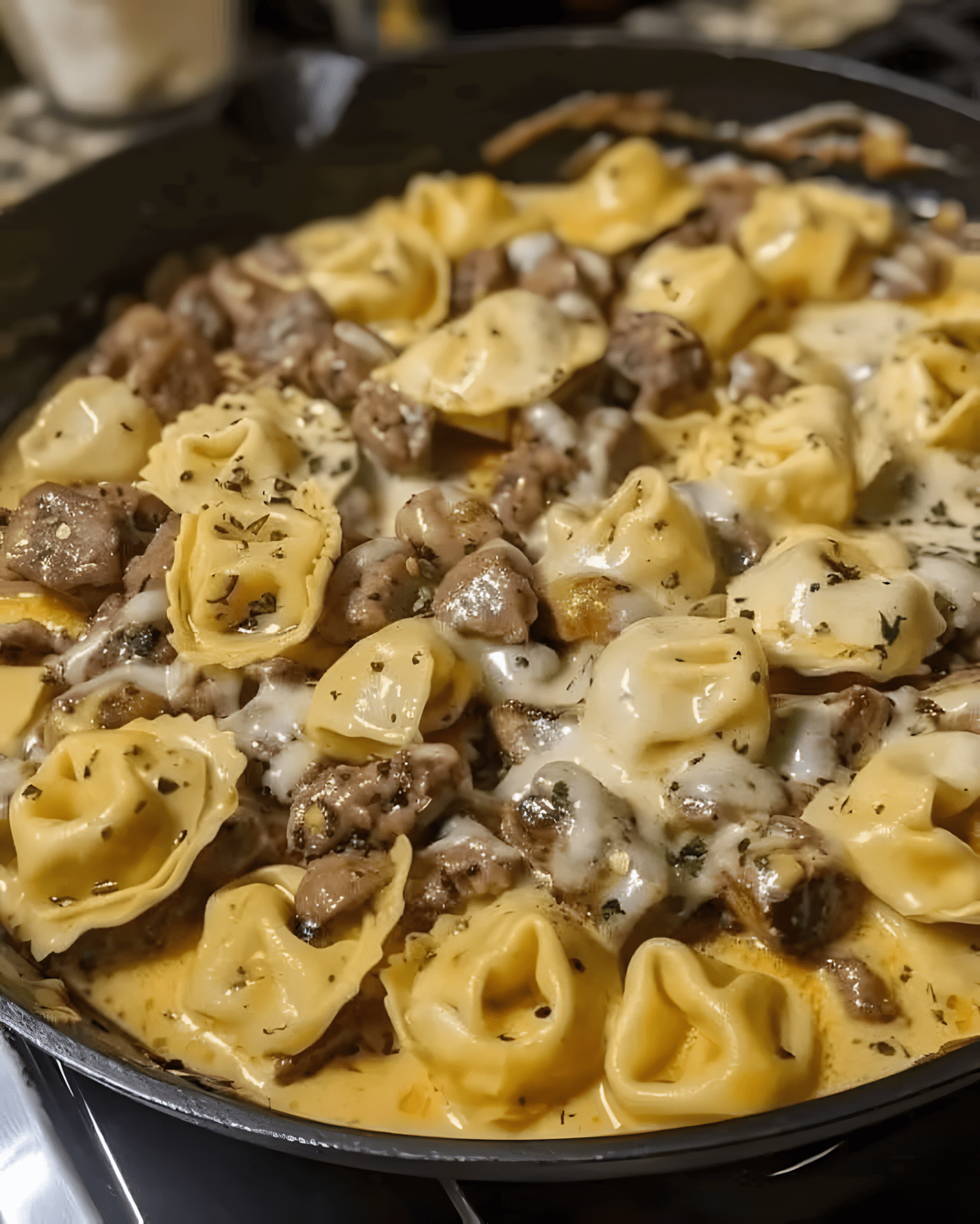 ✨ Een romig, smaakvol pastagerecht met zachte tortellini, sappig vlees en een rijke kaassaus – perfect voor een luxe, hartverwarmende maaltijd!