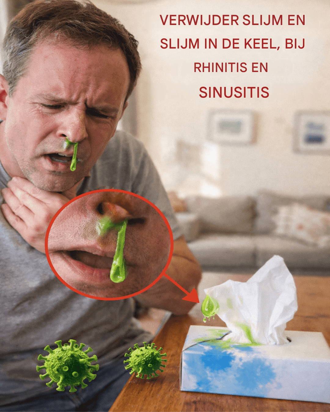 Overmatig slijm en flegma zijn de natuurlijke manier waarop je lichaam stofdeeltjes, virussen en allergenen opvangt om je luchtwegen te beschermen. Wanneer de productie toeneemt als gevolg van rhinitis of irritatie, leidt dit tot verstopping, postnasale drip en die vervelende behoefte om constant je keel te schrapen.