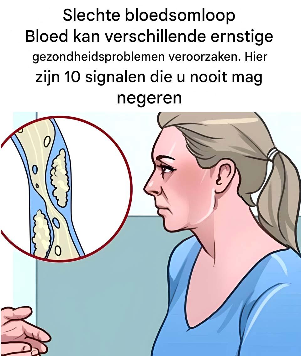 Een goede bloedcirculatie is essentieel voor het transport van zuurstof en voedingsstoffen door het lichaam. Als dit verstoord is, kunnen er verontrustende symptomen optreden. Als u de signalen van een slechte bloedsomloop herkent, kunt u snel handelen om ernstige complicaties te voorkomen. Hier zijn 10 symptomen die u nooit mag negeren.