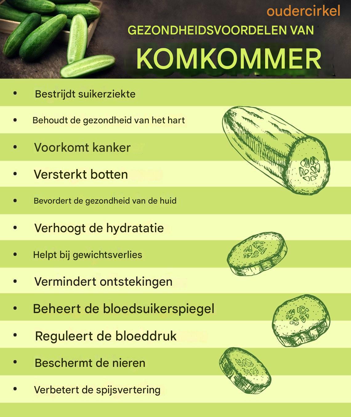 Komkommers worden vaak gezien als een eenvoudig salade-ingrediënt of een verfrissende snack, maar ze bieden veel meer dan alleen een knapperige textuur en milde smaak. Komkommers zitten boordevol essentiële voedingsstoffen, antioxidanten en vocht, en zijn een ware krachtpatser qua gezondheidsvoordelen die je algehele welzijn kunnen verbeteren.