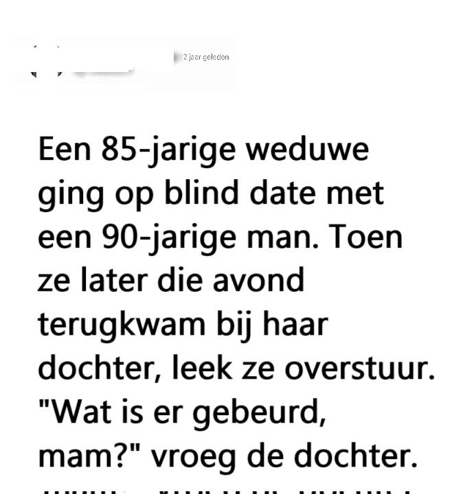 Een 85-jarige weduwe had laatst een afspraakje met een 90-jarige man die ze had leren kennen via een seniorenclub.