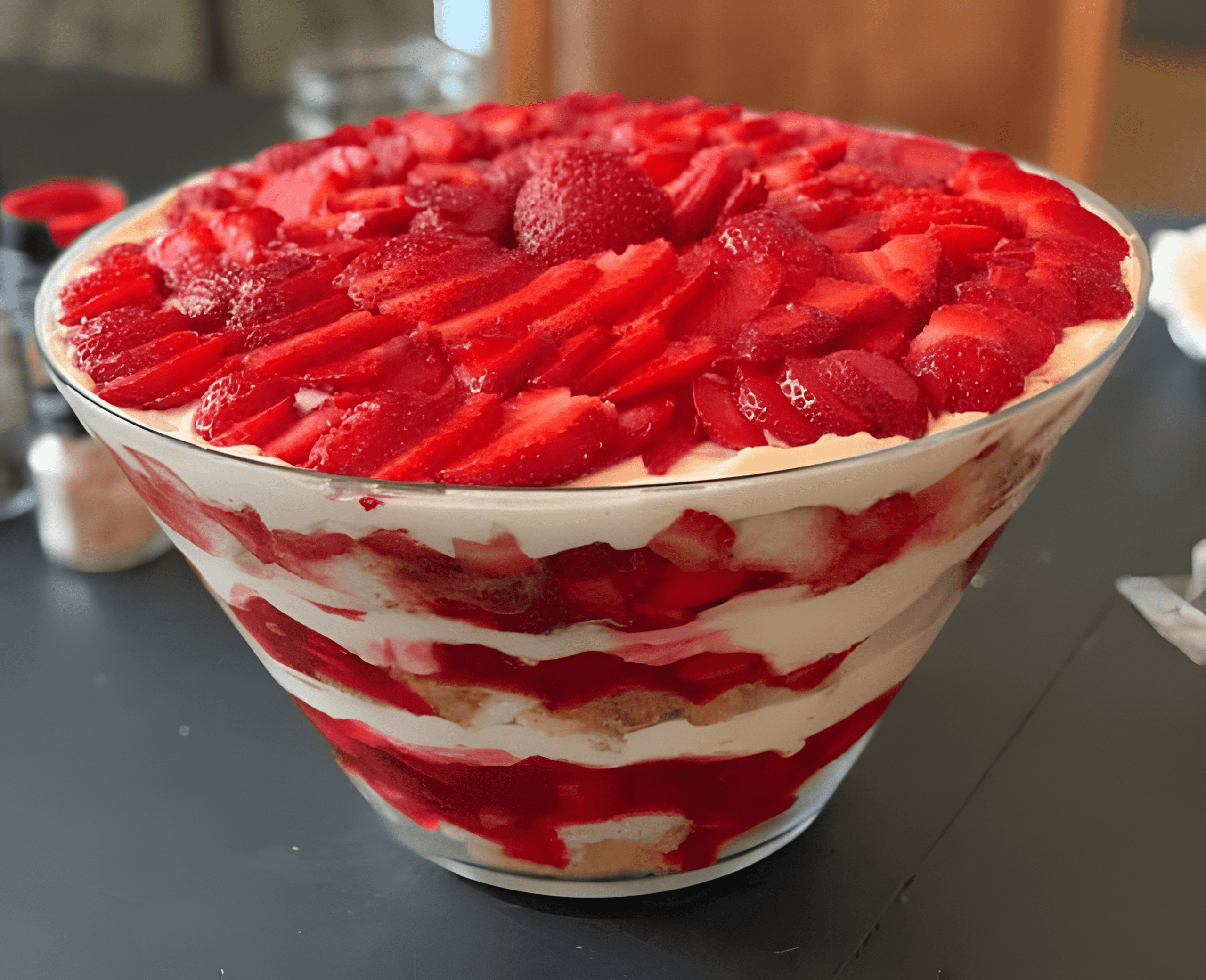 Een prachtige, luchtige en romige trifle met verse aardbeien, zachte cheesecakevulling en smeuïge cake. Perfect voor feestjes en familiebijeenkomsten!