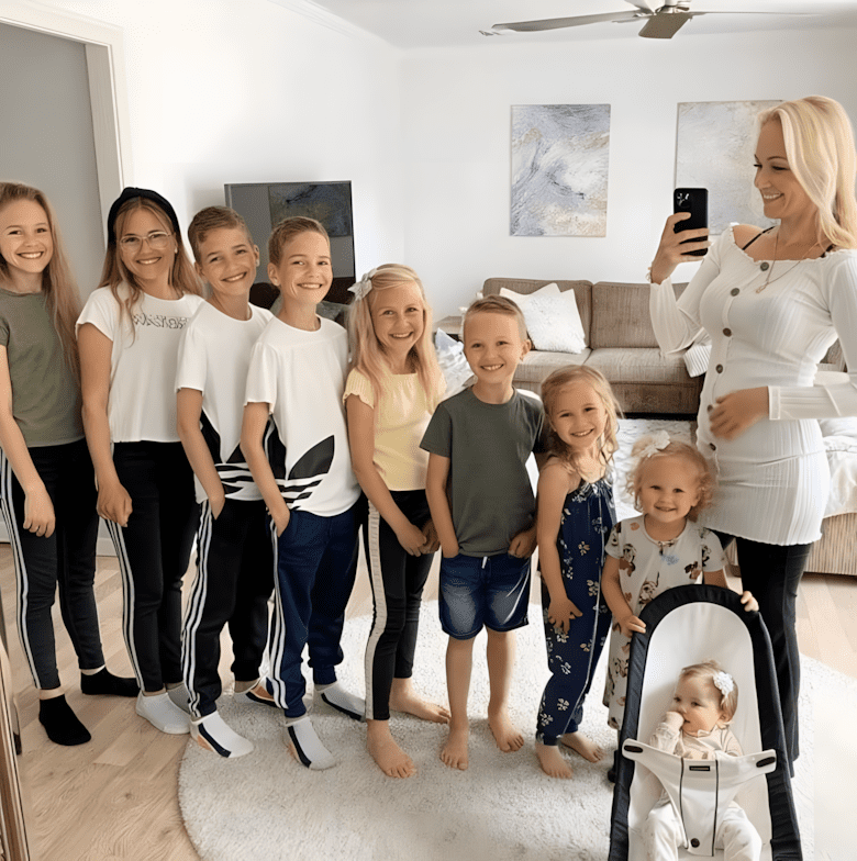 “Altijd zwanger” — vrouw werd op 35-jarige leeftijd negen keer moeder. Bekijk hun familiefoto’s.