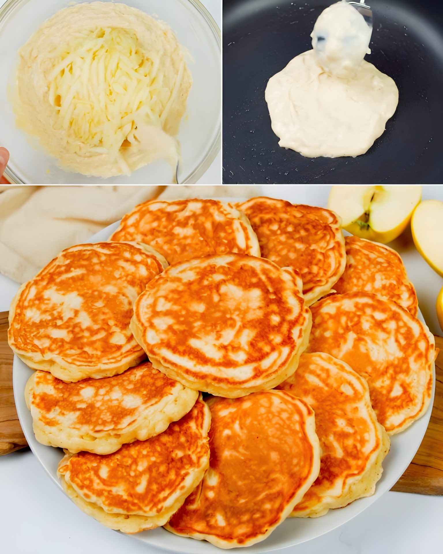 Hier zijn enkele heerlijk luchtige en smaakvolle appelpannenkoekjes, het perfecte ontbijt om de dag mee te beginnen! Deze pannenkoeken zijn gemaakt met geraspte appels, warme kaneel en een vleugje vanille en vormen een heerlijke variant op de klassieke ontbijtpannenkoek. Elke hap zit boordevol de natuurlijke zoetheid van appels, met de luchtigheid die je van pannenkoeken verwacht. Of je ze nu eet op een luie zondagochtend of als een speciale traktatie doordeweeks, ze zijn makkelijk te maken (en nog makkelijker te eten!). Waarschijnlijk heb je alle ingrediënten al in je keuken: appels, kaneel, yoghurt, bloem, suiker en bakpoeder. Maak eenvoudigweg een beslag, voeg de geraspte appel toe en bak het in een voorverwarmde pan. Ontbijten is makkelijk gemaakt!