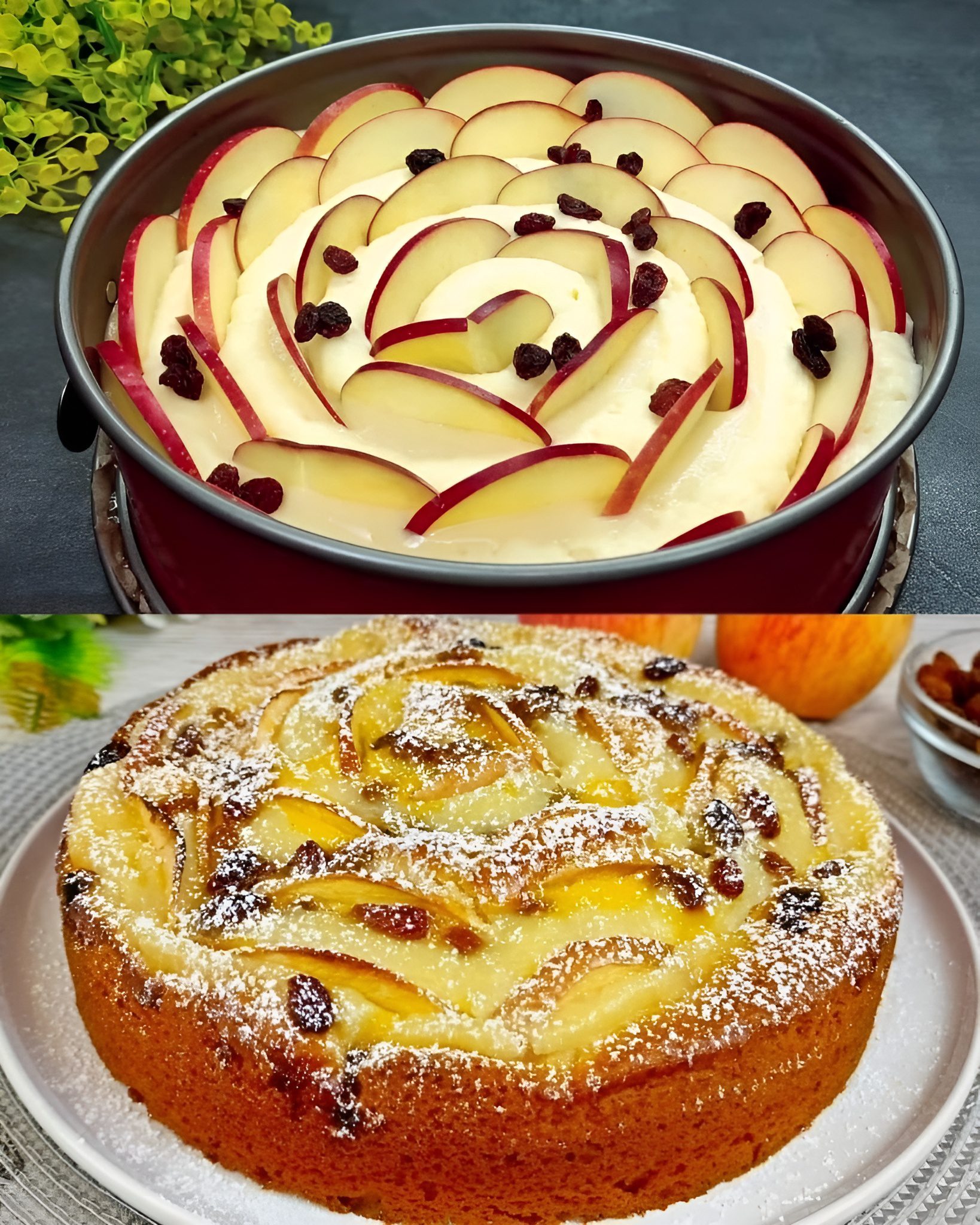 Deze zachte, romige en smaakvolle taart met een heerlijke vulling van appels en rozijnen is perfect voor elke gelegenheid. De romige vulling en zoete appelstukjes zorgen voor een onweerstaanbare traktatie.