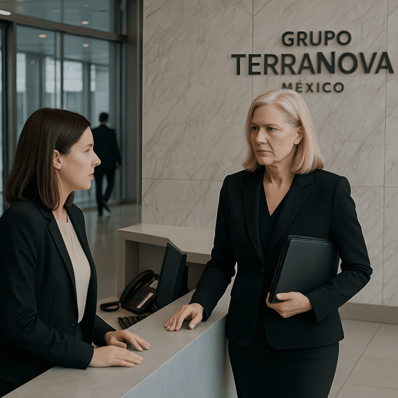 De lobby van Grupo TerraNova Mexico was geen onbekende voor machtige figuren – politici, CEO’s, buitenlandse investeerders. Maar die dinsdagochtend, toen een vrouw in een maatpak door de glazen deur stapte, veranderde de sfeer.