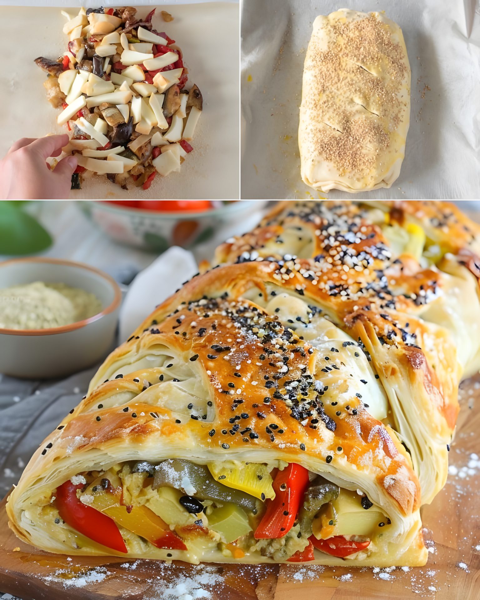 Gevulde bladerdeegrol met groenten en kaas 🧀🥦