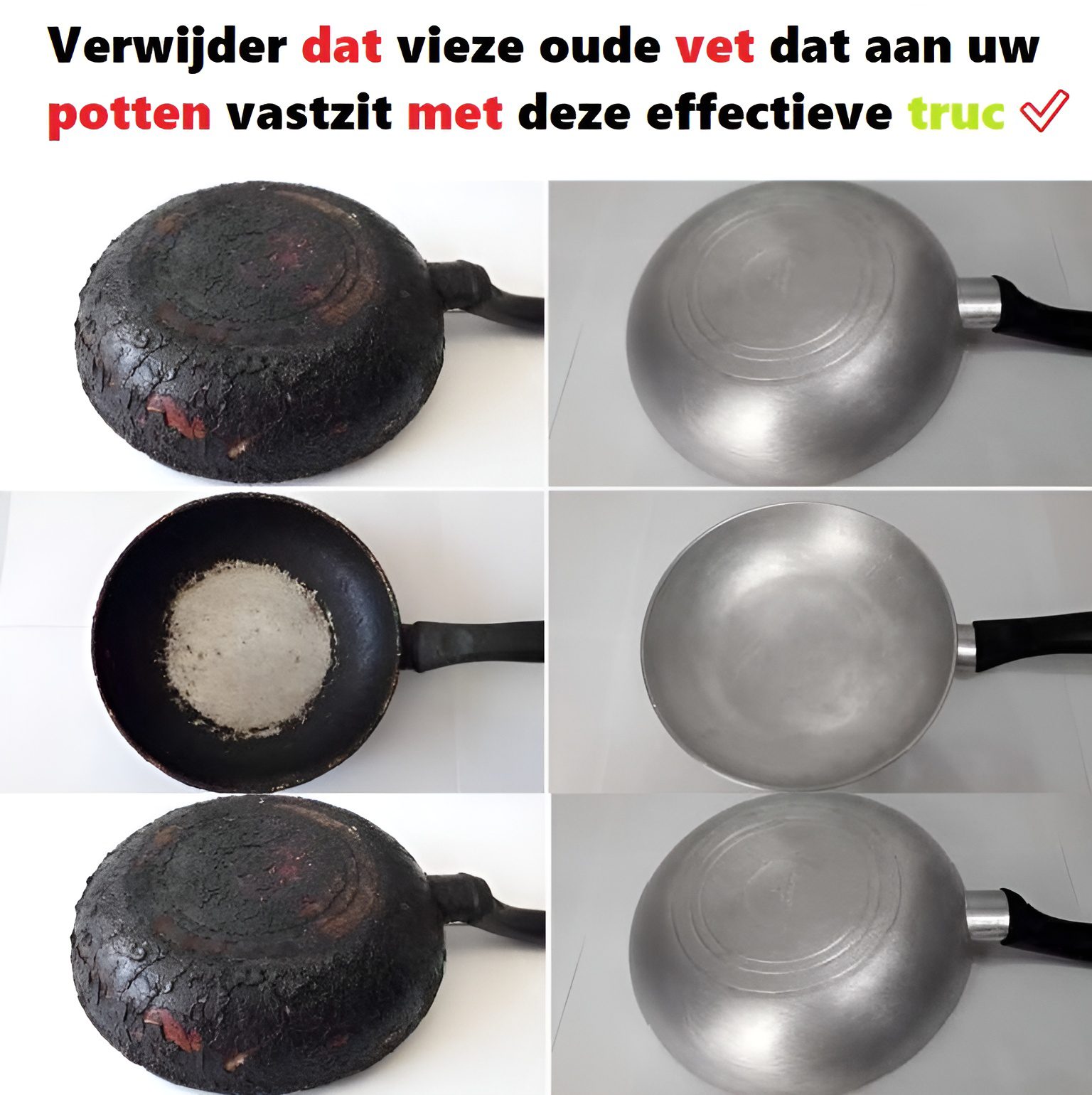 Verwijder dat vieze oude vet dat aan uw potten vastzit met deze effectieve truc