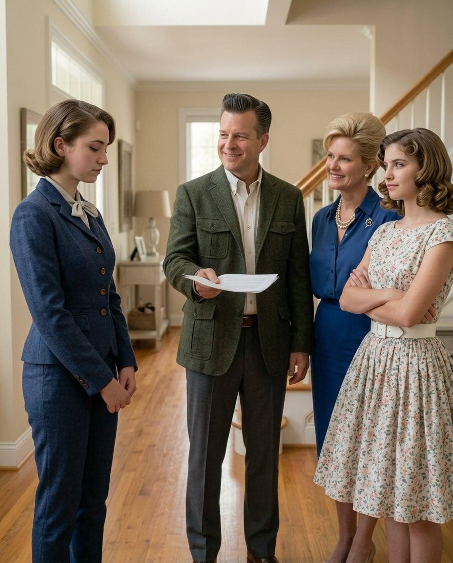 Toen ik vijftien was, zetten mijn ouders me het huis uit nadat mijn tweelingzus me ervan beschuldigde haar gouden armband te hebben gestolen. « Ga weg. We geloven je zus, » schreeuwde mijn vader. Tante Diane reed vier uur om me op te halen. Zeven jaar later, tijdens mijn diploma-uitreiking aan de universiteit, stond mijn tante op tijdens mijn speech. De handen van mijn moeder trilden zichtbaar toen ik haar mijn echte moeder noemde.
