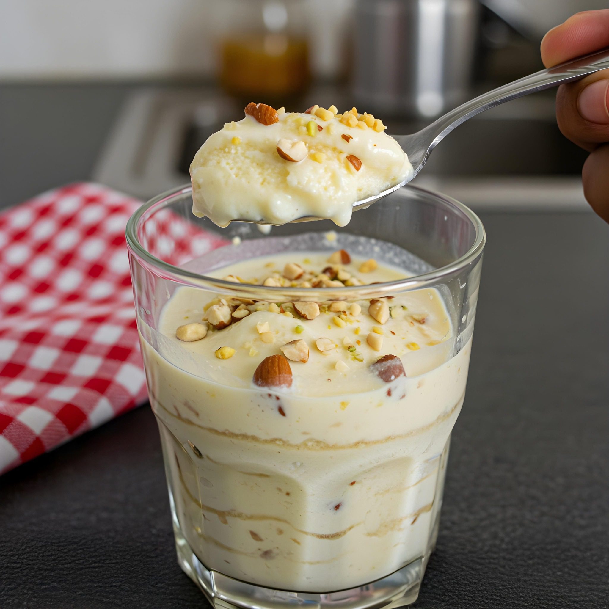 Amandel Shrikhand Dessertglas: Een Romig, Elegant en Eenvoudig Indiaas Toetje
