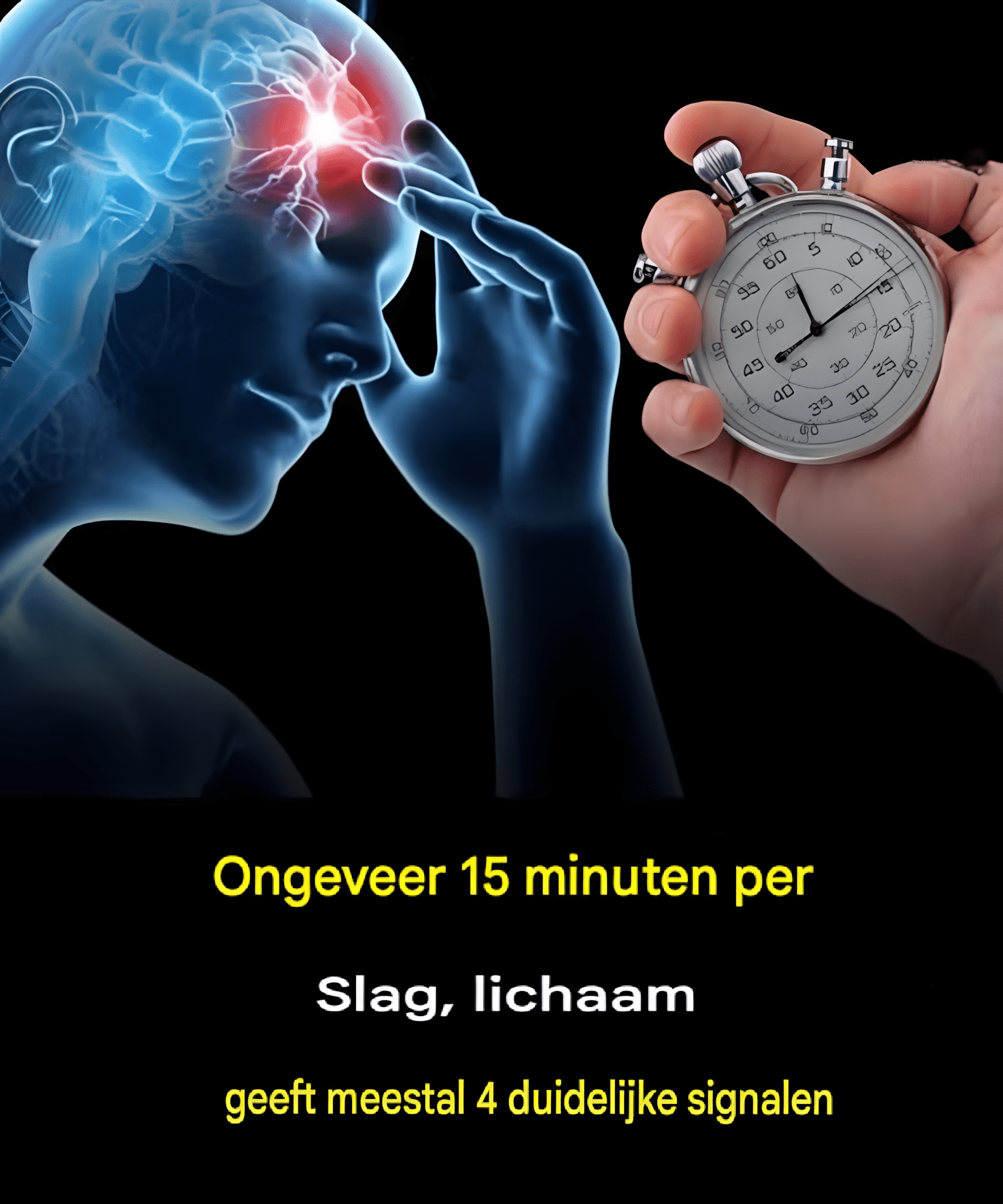 Een beroerte is een plotselinge, levensbedreigende aandoening die optreedt wanneer de bloedtoevoer naar de hersenen wordt onderbroken. Dit kan leiden tot hersenschade, blijvende invaliditeit en zelfs de dood. Het goede nieuws? Het lichaam geeft vaak tot 15 minuten voordat een beroerte optreedt waarschuwingssignalen af .