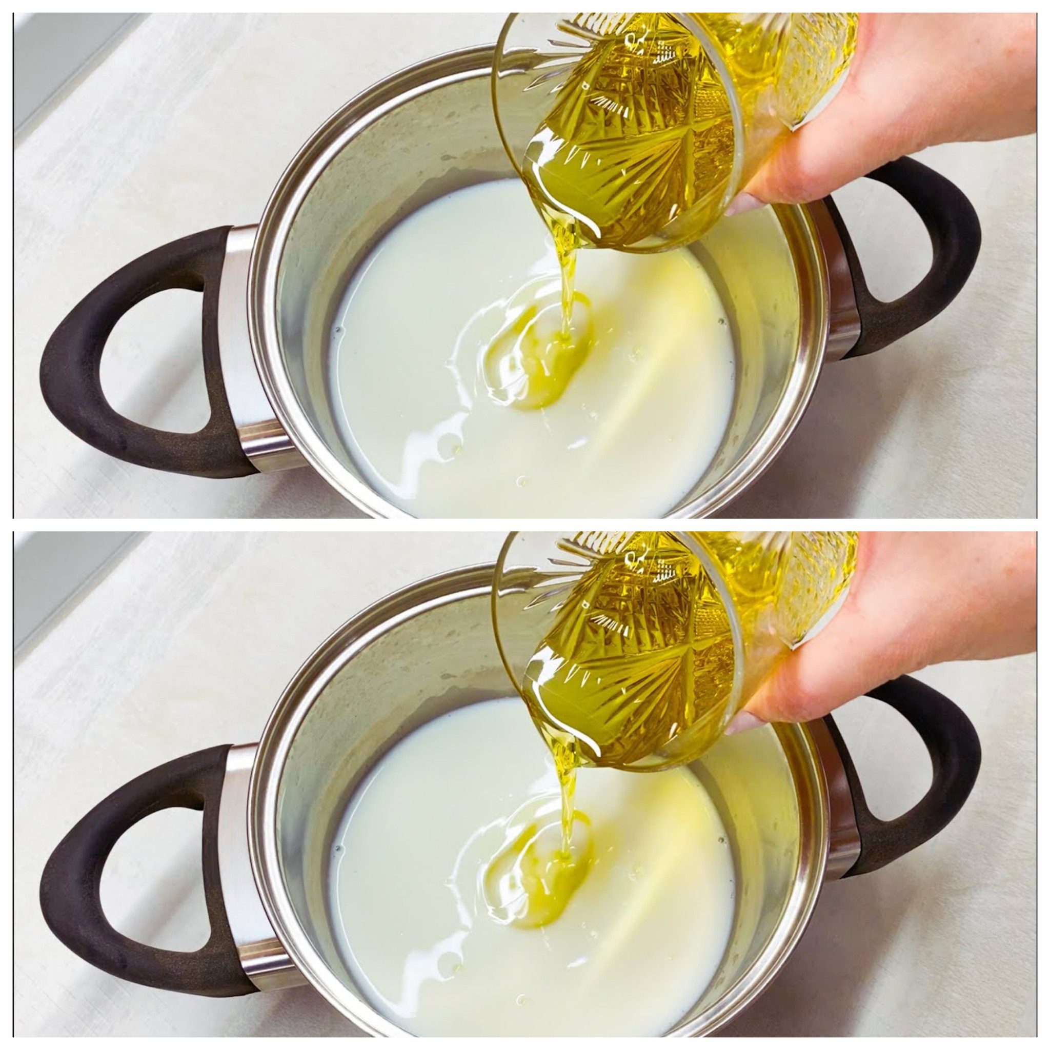Giet olijfolie bij de melk. Ik koop het niet meer in de winkels. Gemakkelijk en snel.