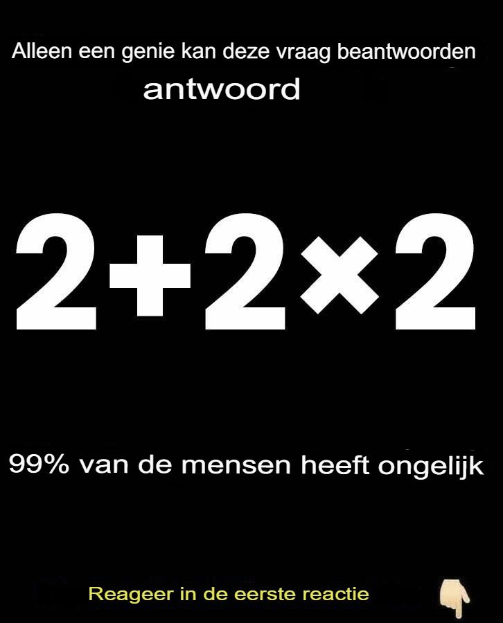 Wiskundetest: 2 + 2 × 2 – Wat is het juiste antwoord?