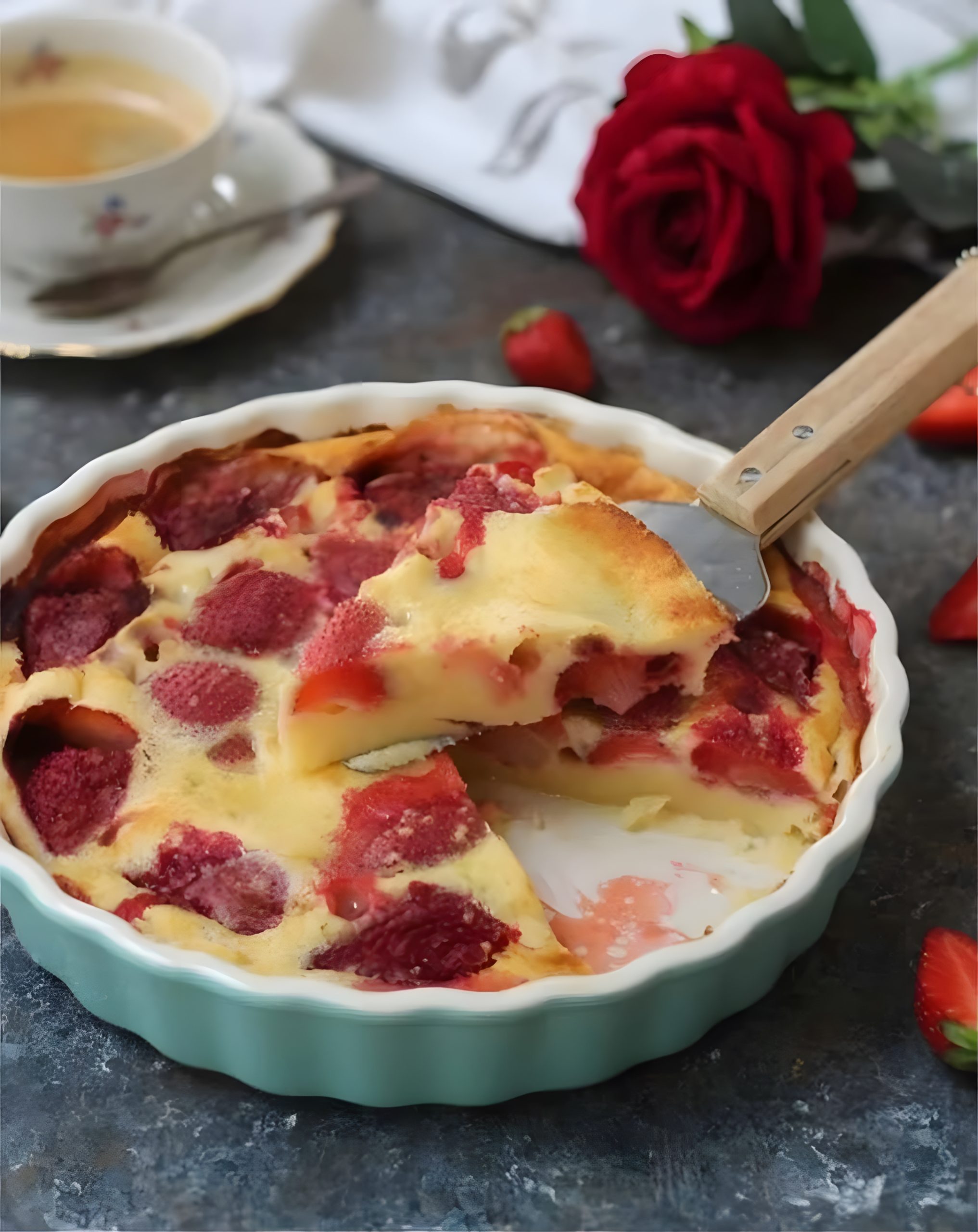 Deze luchtige clafoutis met aardbeien is een heerlijk Frans dessert, perfect voor de lente en zomer. De combinatie van sappige aardbeien en een romig, luchtig beslag maakt dit een absolute favoriet bij elke gelegenheid!