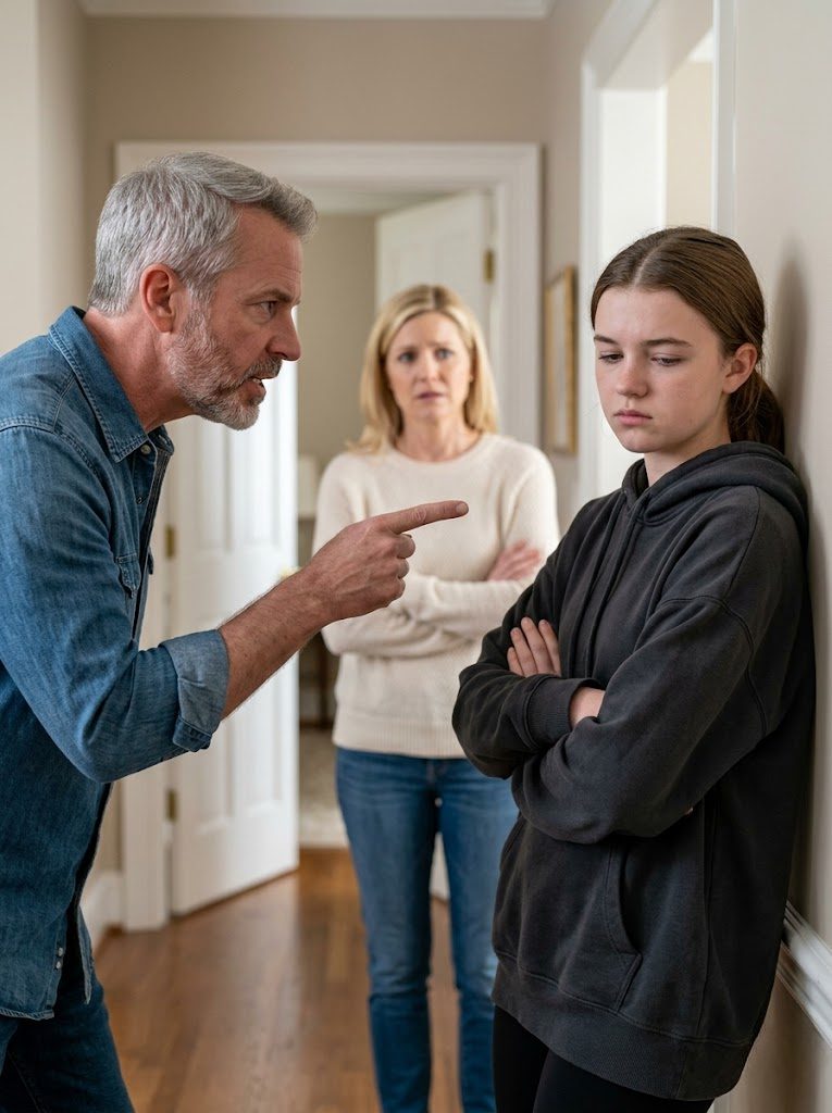 Ik viel half, ving mezelf half op aan de stoel. Mijn vader stond boven me, zwaar ademend, zijn neusgaten wijd open, één hand nog half gebogen alsof hij geschokt was dat hij leeg was. Mijn moeder kwam niet naar me toe. Ze vroeg niet of ik gewond was. Ze keek toe met die kalme, beoordelende blik die ze opzette wanneer ze moest beslissen welke realiteit haar minder zou kosten.