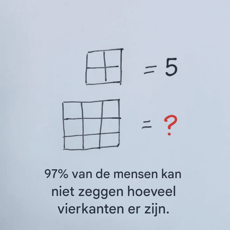 Het probleem lijkt op een puzzel : je begint enthousiast en ontdekt dan dat er verschillende niveaus zijn. Het 3×3-raster bevat bijvoorbeeld niet alleen kleine, gemakkelijk zichtbare vierkanten. Het bevat ook subtiele combinaties : middelgrote vierkanten bestaande uit 2×2 vakjes, en een groot vierkant dat het geheel omvat. Als je deze groeperingen niet in acht neemt, mis je de helft van het verhaal. Het goede nieuws is: er is een simpele methode om alles te tellen zonder iets te vergeten.