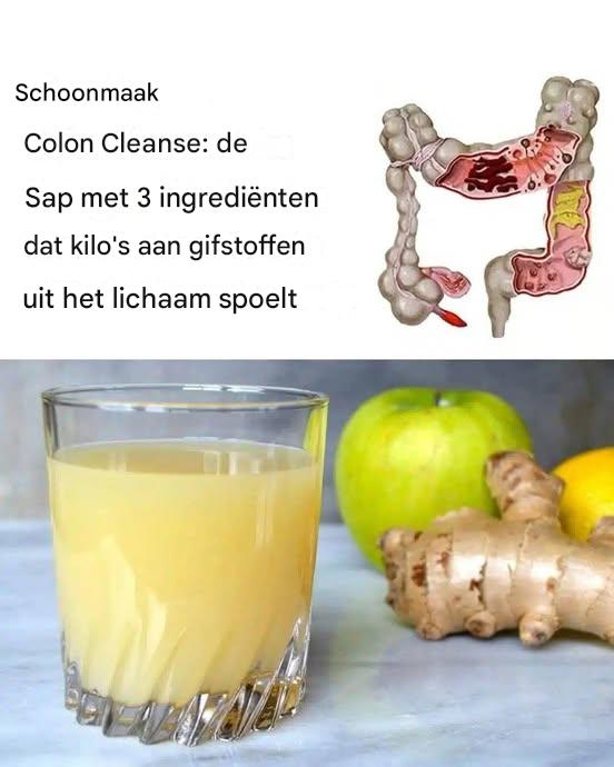 Heeft u last van een opgeblazen gevoel, indigestie of een zwaar gevoel? Dit zijn veelvoorkomende tekenen van overbelasting van de dikke darm. Een trage of verstopte dikke darm kan leiden tot vermoeidheid, spijsverteringsproblemen en andere gezondheidsproblemen. Gelukkig is er een eenvoudige en natuurlijke oplossing om uw lichaam te helpen zichzelf te reinigen: een detox sapje gemaakt van appels, gember en citroen. Deze drank helpt gifstoffen af te voeren en bevordert een soepele spijsvertering. Dit is hoe het werkt en hoe je het in je routine kunt opnemen.