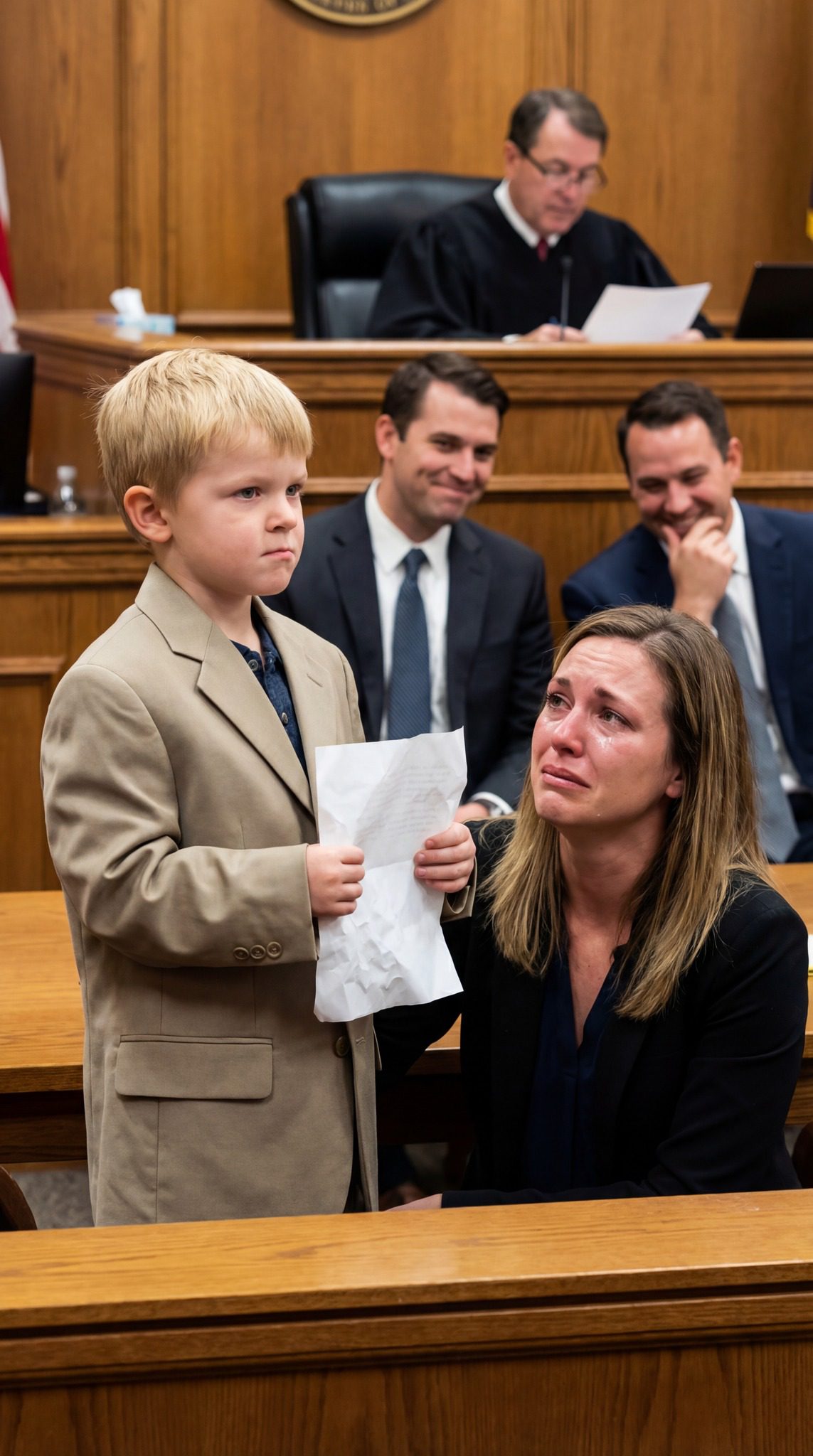 Naast me zat mijn zesjarige zoon, Oliver Ford. Zijn benen bungelden in de lucht terwijl hij probeerde kalm te blijven. Ik had hem een blazer uit een tweedehandswinkel aangetrokken, omdat hij erop stond dat hij er daardoor belangrijk uitzag. Ik had nooit kunnen bedenken hoe belangrijk hij die dag zou worden.