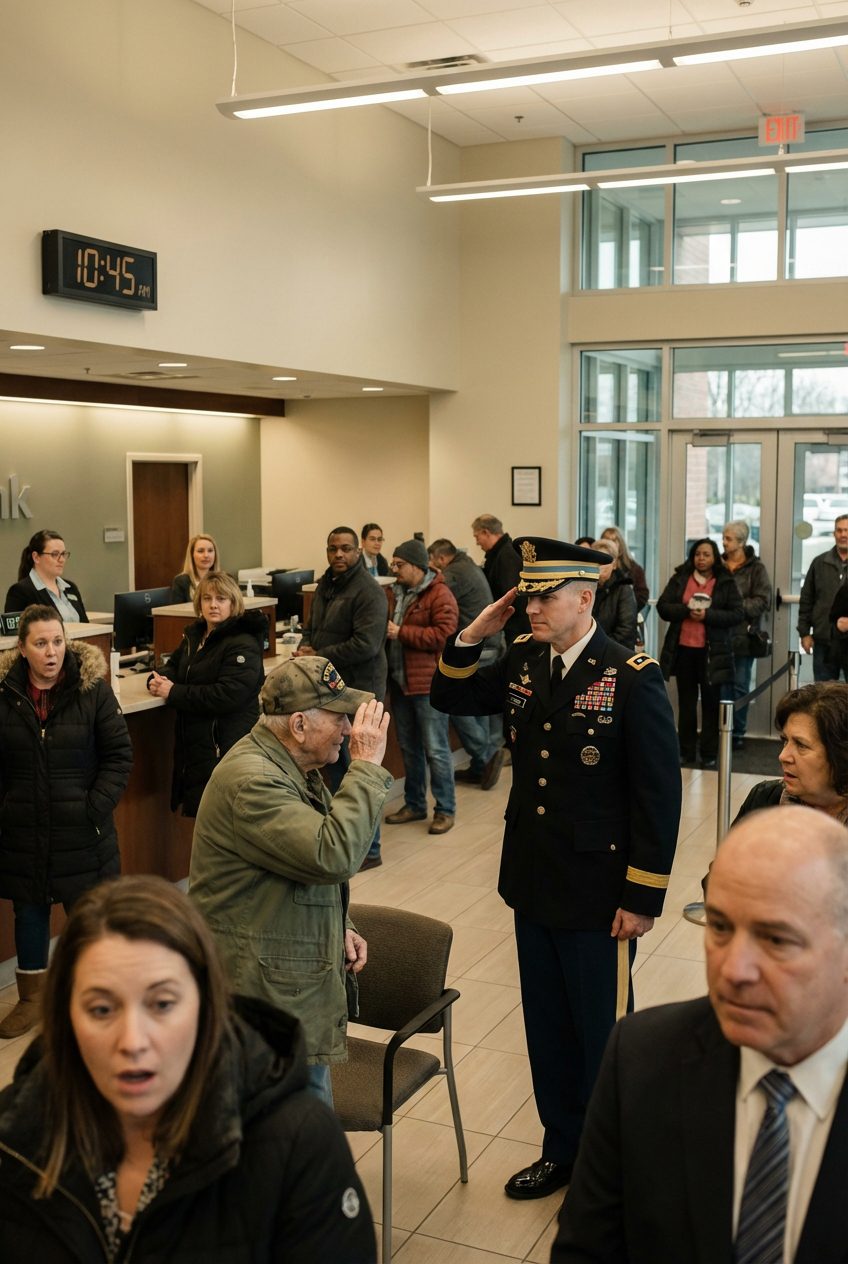 De dag dat een bank een « nep-veteraan » te schande maakte… Totdat een generaal binnenkwam en alles veranderde.