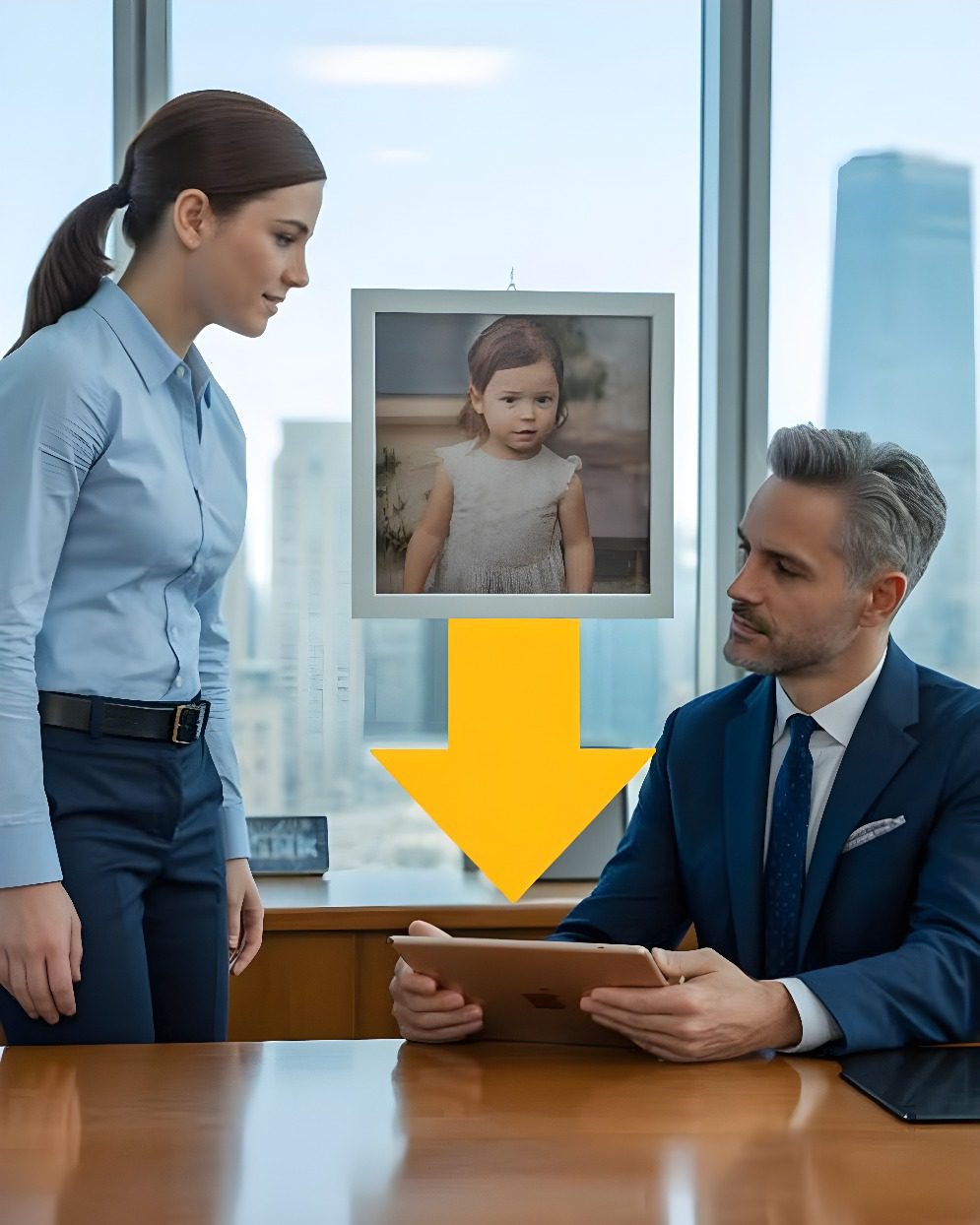 “Ik zal niet falen, meneer,” beloofde ze, terwijl ze iets opmerkte dat haar adem benam. In een elegant zilveren kader lag een vervaagde foto van een klein meisje, vier jaar oud en gekleed in een wit jurkje dat een zonnebloem vasthield. Het was een foto van haar zelf. De wereld leek te vertragen. Hetzelfde jurkje, bewaard door haar moeder in een doos, hetzelfde zonnebloem dat ze die dag in het park had geplukt.
