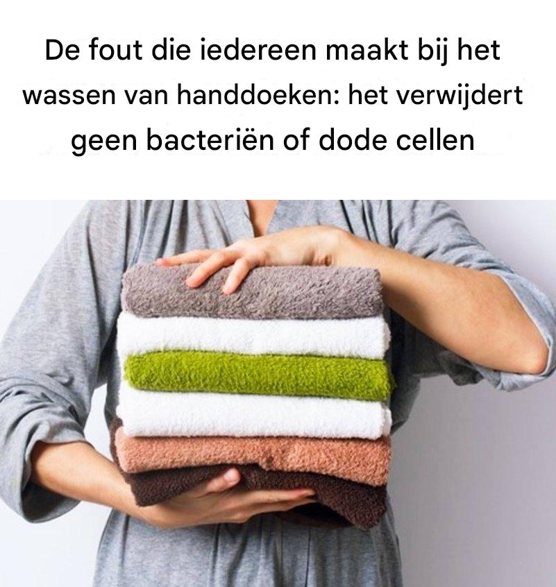 Sport- of zwemhanddoeken : Deze absorberen zweet en vocht, waardoor ze broedplaatsen worden voor bacteriën en schimmels. Was ze na elk gebruik.