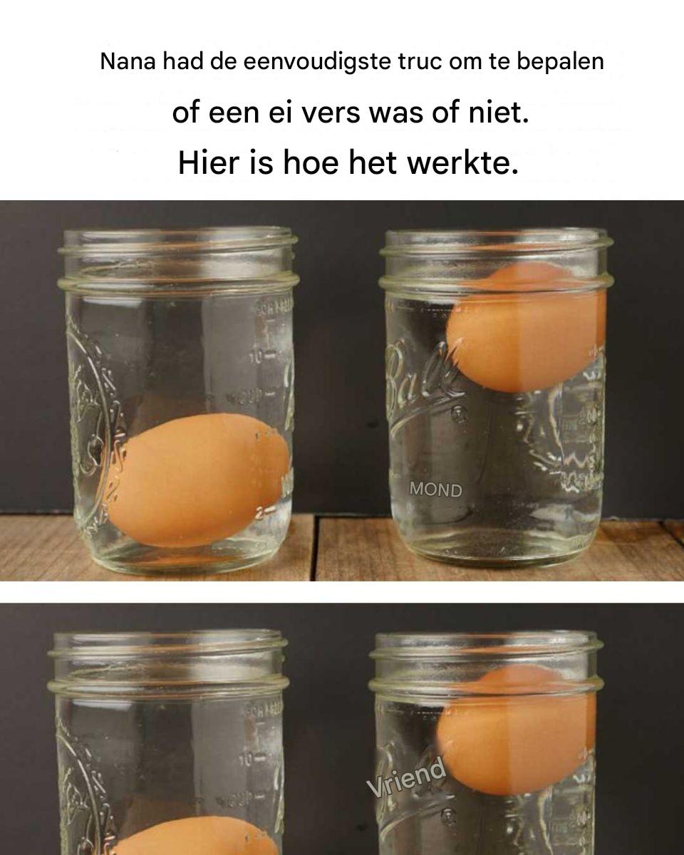 In een tijd waarin het grootste deel van ons voedsel voorverpakt en kant-en-klaar is, kan het gemakkelijk gebeuren dat we het belang van het controleren van de versheid van onze boodschappen over het hoofd zien. Dit geldt vooral voor iets belangrijks als eieren. Eieren zijn een veelzijdig en voedzaam onderdeel van veel recepten. Maar als u het verkeerde ei gebruikt, kan dat een gerecht verpesten of, erger nog, ervoor zorgen dat u ziek wordt. Nu steeds meer mensen weer thuis koken en traditionele kookmethodes uitproberen, worden betrouwbare manieren om de versheid van eieren te testen steeds populairder. Een van die methoden komt van Nana – een eenvoudige maar effectieve truc die van generatie op generatie wordt doorgegeven. Laten we eens dieper ingaan op deze eenvoudige techniek waarmee u altijd de meest verse eieren op tafel hebt.
