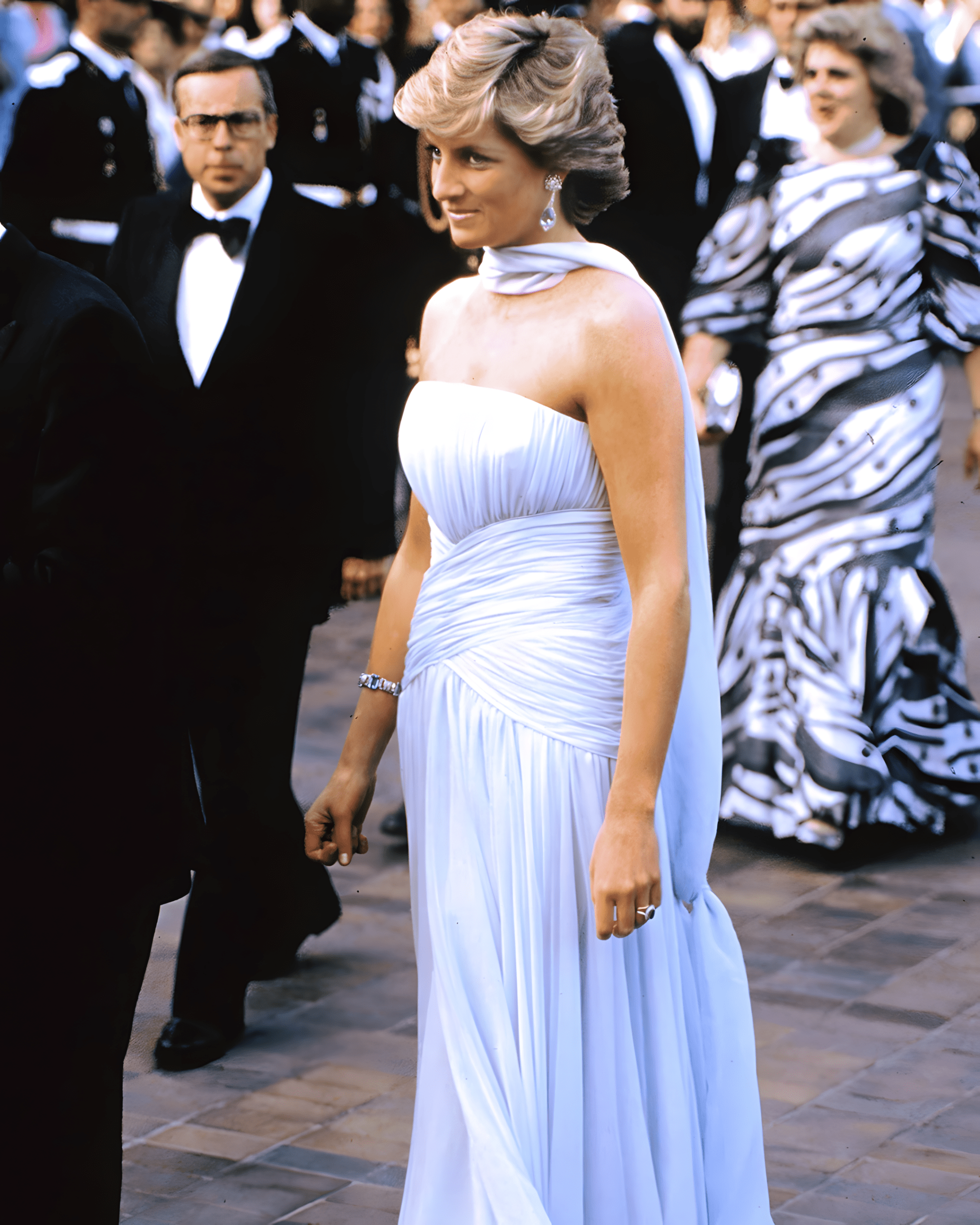 Deze filmische toespeling, discreet en subtiel, werd destijds niet opgemerkt, maar voor oplettende kijkers was de verwijzing duidelijk. Met deze jurk bracht Diana een eerbetoon aan de vrouw die lang vóór haar de schijnwerpers van Hollywood had verruild voor de beperkingen van het protocol.