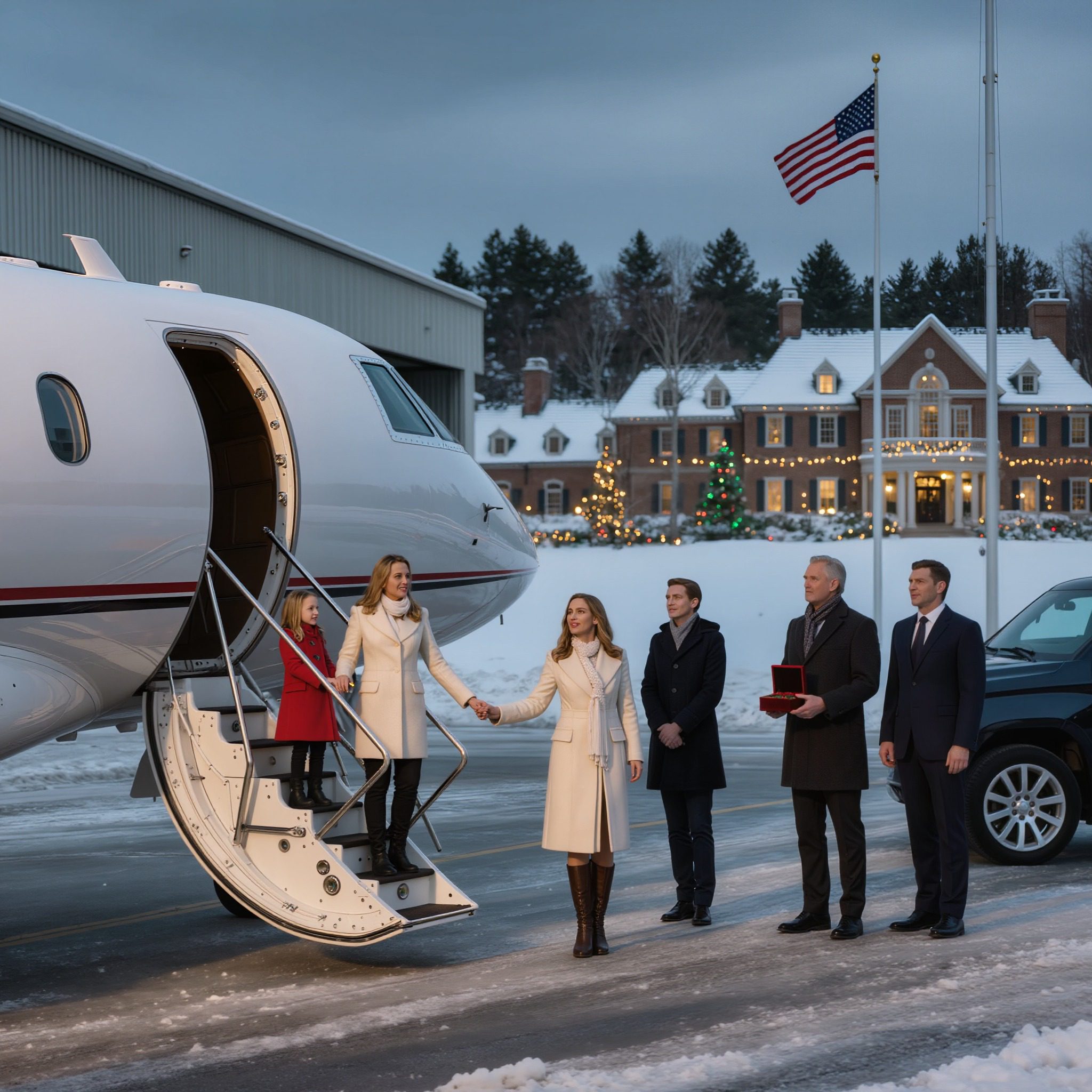 Het privévliegtuig stond op het tarmac te wachten, het glanzende oppervlak weerkaatste het bleke ochtendlicht.