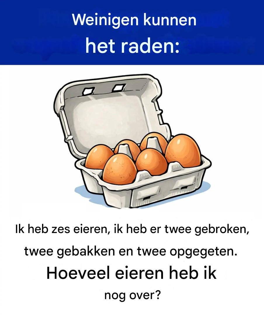 Op het eerste gezicht lijkt het bijna kinderachtig. Een korte zin, eieren, simpele handelingen… en toch heeft dit raadsel miljoenen internetgebruikers aan het twijfelen gebracht. In slechts een paar seconden verandert het een ogenschijnlijk voor de hand liggende redenering in een ware hersenkraker. De uitdaging is begonnen: kun jij dit eierraadsel in minder dan vijf seconden oplossen zonder je door de woorden te laten misleiden?