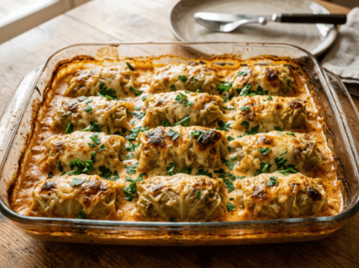 Gevulde koolrolletjes op een bedje van groenten, gegarneerd met kaas: een heerlijke, alledaagse familieklassieker! Dit gerecht is niet alleen ongelooflijk lekker en vullend, maar ook rijk aan voedingsstoffen en kleurrijke details. Perfect voor het hele gezin: jullie zullen er zeker van genieten!
