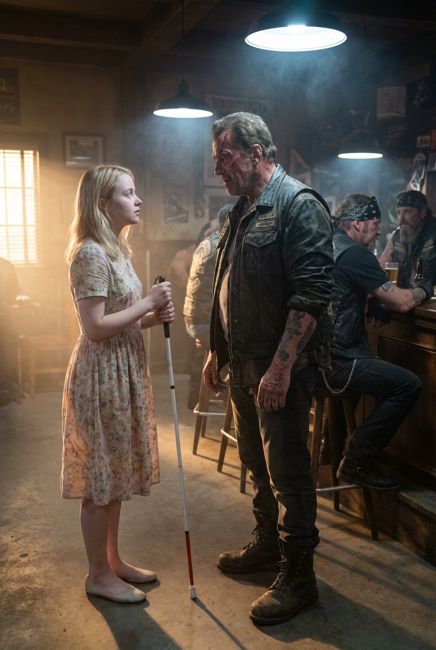 Een blind meisje liep de gevaarlijkste motorbar van de stad binnen — wat er daarna gebeurde, schokte iedereen.
