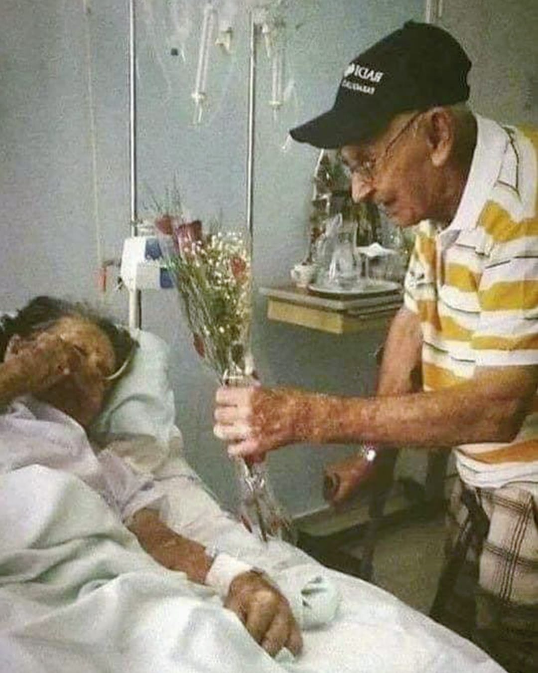 Door dit herhaalde gebaar mompelt hij voortdurend: « Ik blijf aan je zijde, gisteren en vandaag. » Ook al wekt zijn gezicht geen herkenning meer op in de blik van zijn partner, hij belichaamt deze constante aanwezigheid, dit onzichtbare maar onfeilbare anker.