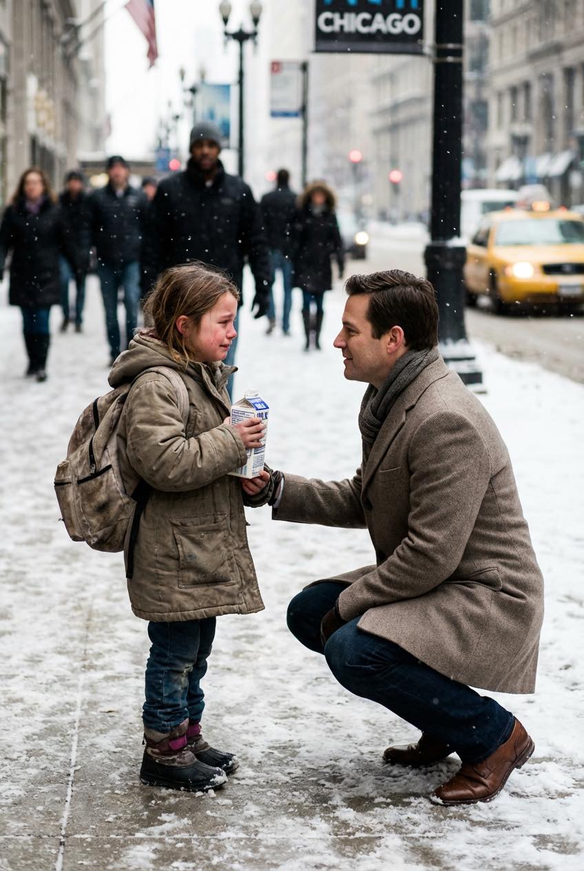 Een dakloos meisje vroeg om een pak melk voor haar broertje — wat de miljonair vervolgens zei, schokte iedereen.