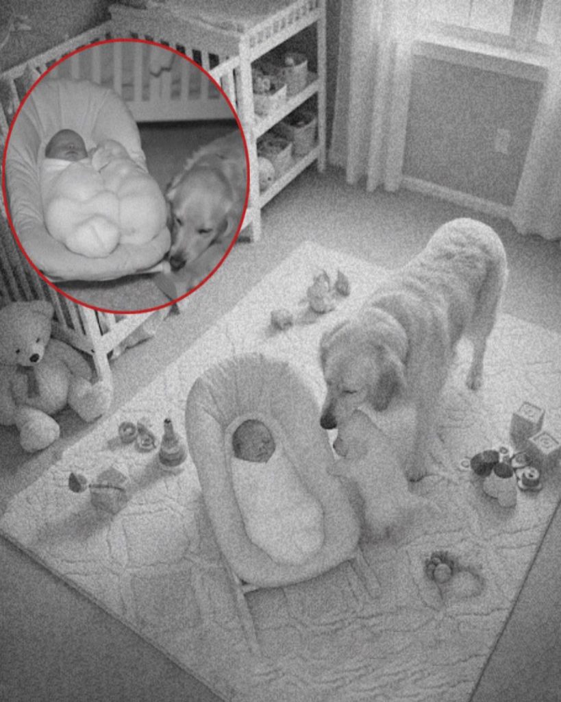 Toen hun dochtertje geboren werd, werd de vreugde van het stel  nog groter  door een verrassing: hun golden retriever beviel ook van een schattig nestje puppy’s. Twee moeders onder één dak, die elk met tederheid en waakzaamheid over hun kleintjes waakten. Om ieders rust en veiligheid te garanderen, hadden de jonge ouders een  zeer strikt systeem opgezet  : een aparte kamer voor de puppy’s,  een babyfoon en constant toezicht. Alles was onder controle. Of tenminste, dat dachten ze…