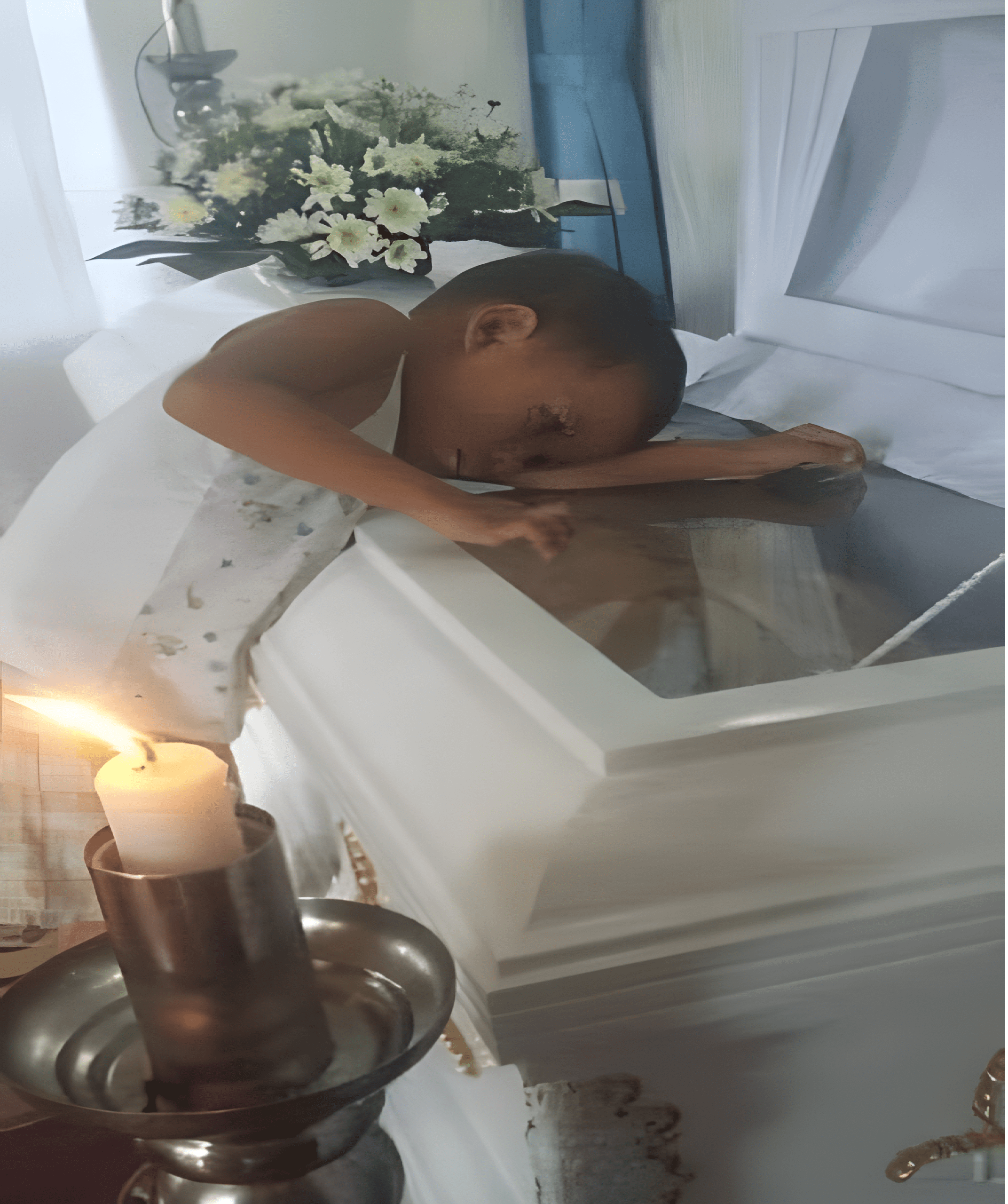 De scène die sociale media shockeerde, toont Khayne met zijn hoofd tegen de kist en zijn kleine armen die proberen de vrouw te omarmen die hij niet meer kan bereiken. Hij schoof zelfs stoelen bij haar om naast haar te slapen, in de hoop haar in zijn dromen tegen te komen. Een gebaar van pure liefde, even mooi als ontroerend.