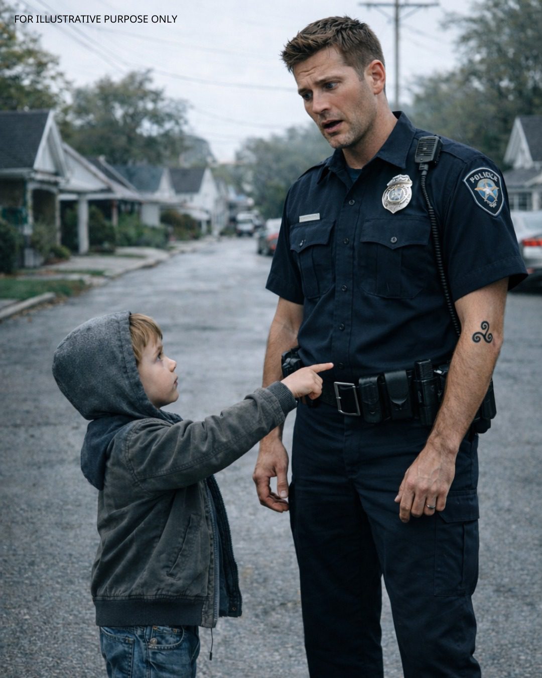 Een jongetje – niet ouder dan vier – stond daar en staarde hem aan met een ernst die niet paste bij zo’n jonge leeftijd. Hij keek niet naar het insigne. Of naar het uniform. Of naar de radio die aan Lucas’ schouder was bevestigd.