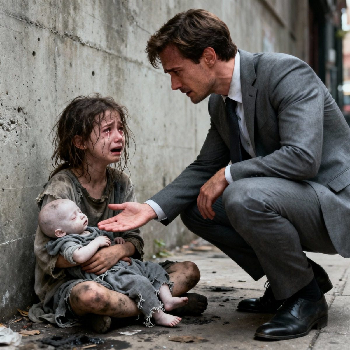 Een straatmeisje smeekt: « Begraaf mijn zus » – het antwoord van de weduwe miljonair zal je verrassen.