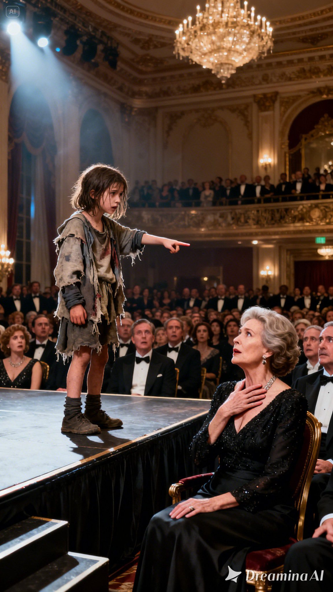 Het beleefde, georkestreerde gemurmel werd abrupt verstoord door een commotie bij de hoofdingang. Een kind, niet ouder dan twaalf, was er op de een of andere manier in geslaagd langs de fluwelen afzettingen en de rij imposante bewakers te glippen. Ze vormde een schril, smerig contrast met de zorgvuldig gecreëerde, met botox behandelde perfectie van het evenement. Haar te grote hoodie was bij de elleboog gescheurd, haar gezicht was besmeurd met vuil dat er dagenoud uitzag, en haar sneakers werden bij elkaar gehouden door loslatende stukjes plakband. Ze had duidelijk honger, haar tengere gestalte was mager en fragiel, maar in haar ogen brandde een vuur dat heter en gevaarlijker was dan gewone honger. Het was het vuur van een enkel, wanhopig doel.