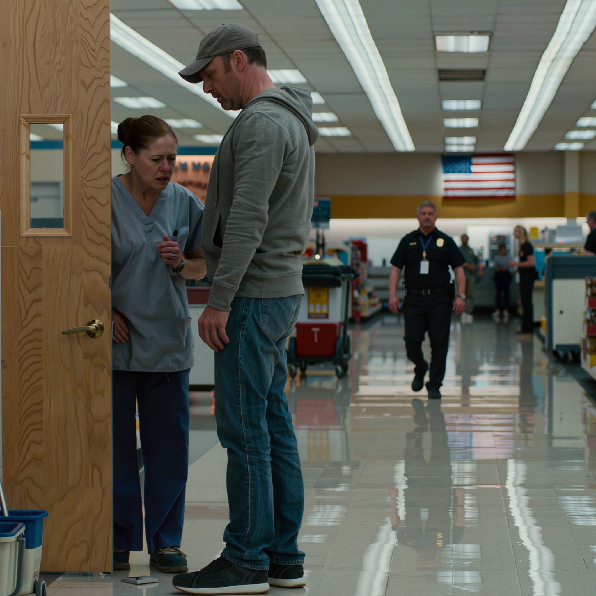 ‘Luister, Mike,’ vervolgde Maria, haar stem fluisterend. ‘Ik heb deze baan nodig. Mijn dochter – ze is pas acht, en zonder de operatie…’ Ze kon haar zin niet afmaken. Marcus keek toe hoe ze met trillende vingers haar naambadge weer op haar uniform speldde. Dat kleine zilveren rechthoekje betekende alles voor haar: de medische zorg voor haar dochter, de huur, hun overleven. En iemand maakte misbruik van die wanhoop.