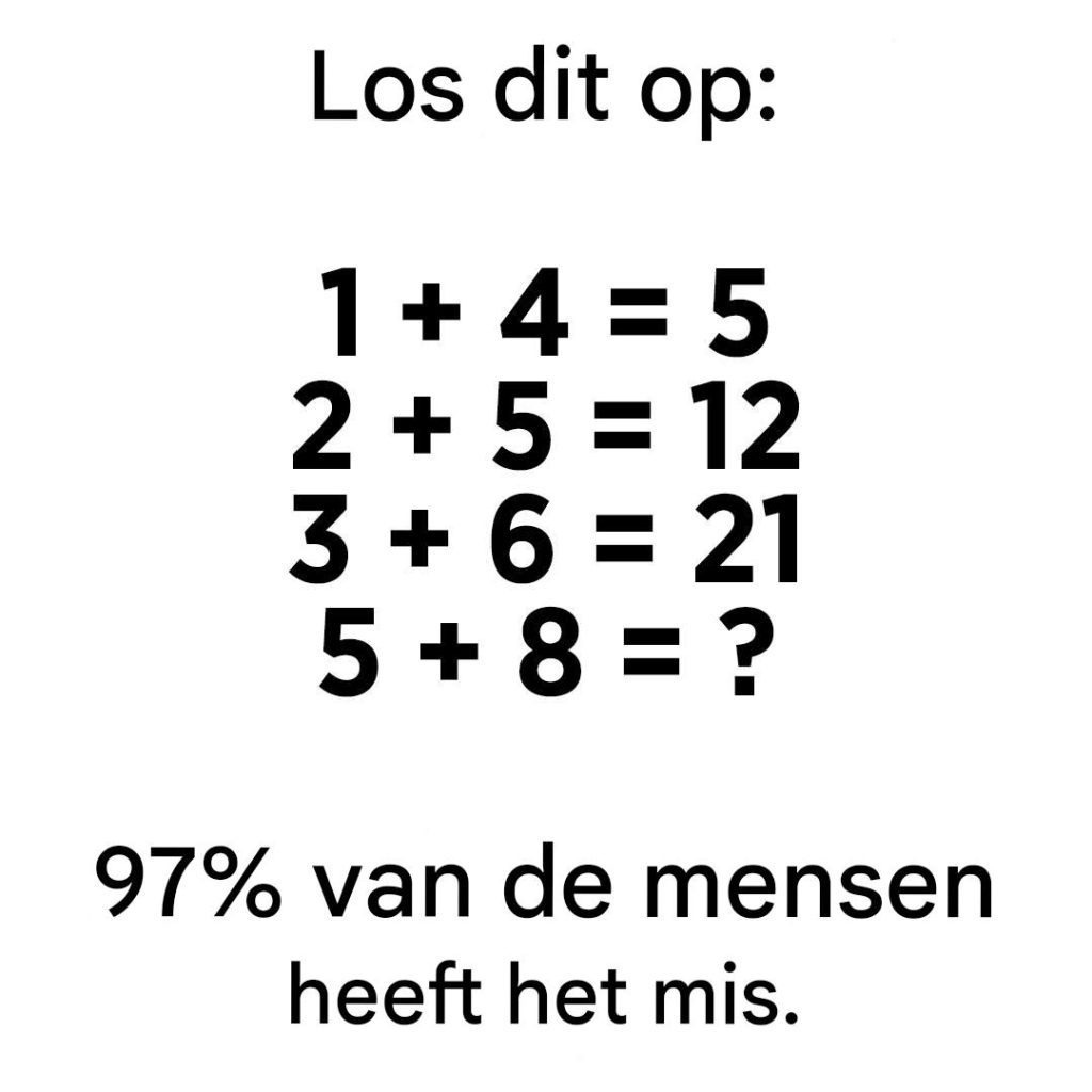Instinctief zoekt ons brein naar een simpele logica. Een klassieke optelsom? Uiteraard niet. Anders zou het mysterie niet bestaan. En dat is waar het interessant wordt: afhankelijk van de logica die je hanteert, kunnen meerdere antwoorden als juist worden beschouwd.