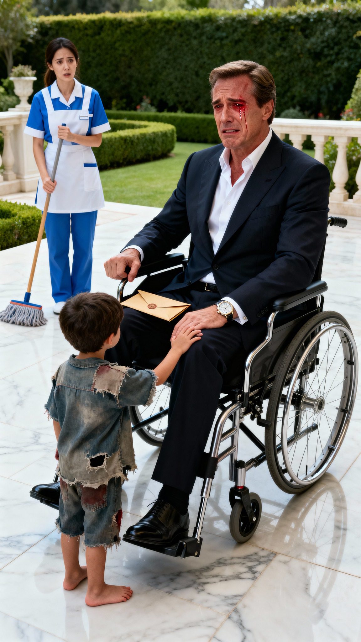 Thiago, de rijkste zakenman van de stad, zat in zijn rolstoel in de ochtendzon – gebroken, stil en huilend alsof het landhuis hem uiteindelijk helemaal had opgeslokt.