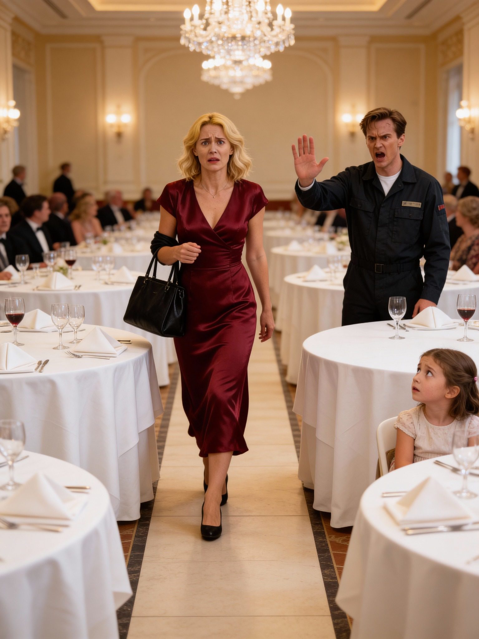 Lucas toonde geen verbazing en stelde geen verdere vragen. Hij wees alleen naar de lege stoel. « Rood of wit? » vroeg hij met een ontwapenende eenvoud. Mia keek haar aan alsof er een personage uit een sprookje was verschenen. « Je jurk is de mooiste ter wereld, » flapte ze eruit. « Ben je een prinses? »
