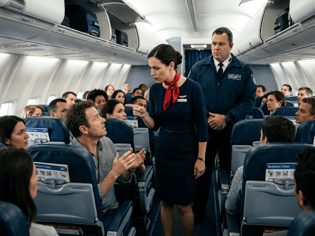 Het vliegtuig stond op het punt op te stijgen toen een incident de hele cabine tot stilstand bracht. Op stoel 2A in de eerste klas werd een elegant geklede zwarte vrouw, die geconcentreerd op haar tablet zat, plotseling aangesproken door een stewardess, ten overstaan ​​van alle passagiers.