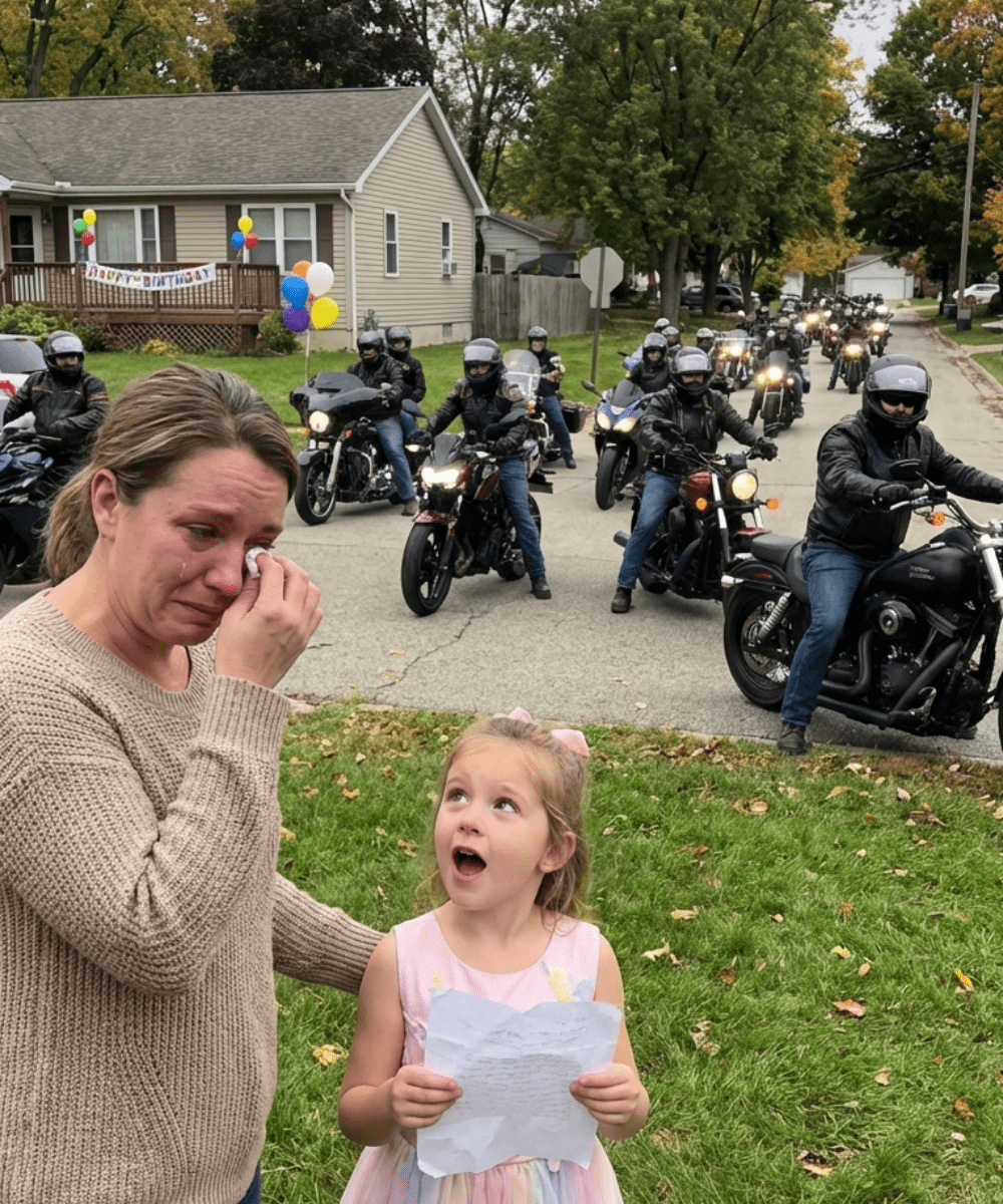 A week earlier, I’d noticed her scribbling something in secret. She’d said it was “for Daddy,” and I hadn’t pressed. I never imagined she’d found the motorcycle club her father once rode with—or that they would actually come.
