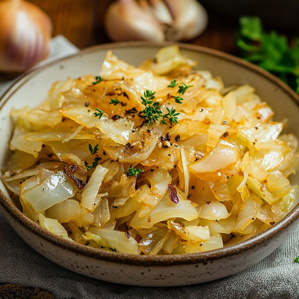 Gebakken kool met ui en knoflook