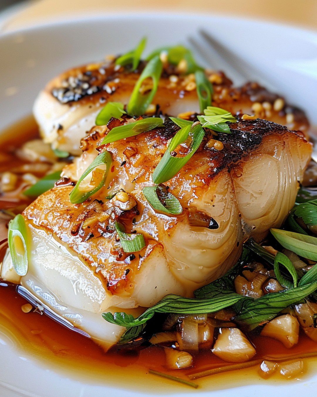 Gebakken sabelvis met gember-sojaglazuur