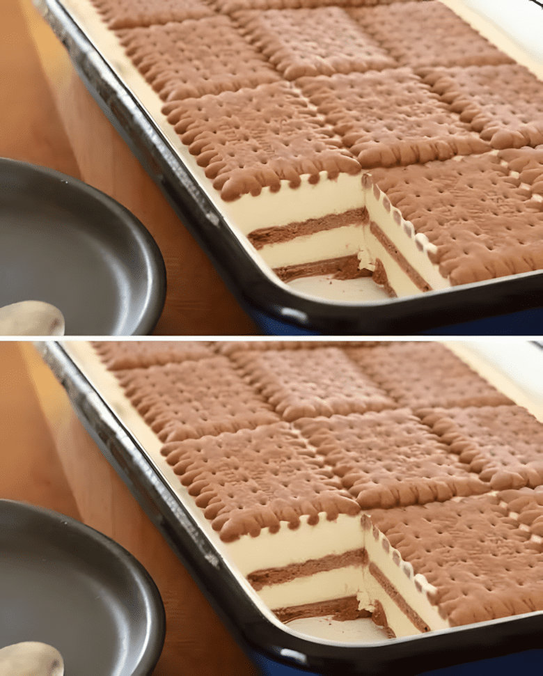 Deze kwark-koekjestaart maak je zonder oven, enkel met een frisse kwarkvulling