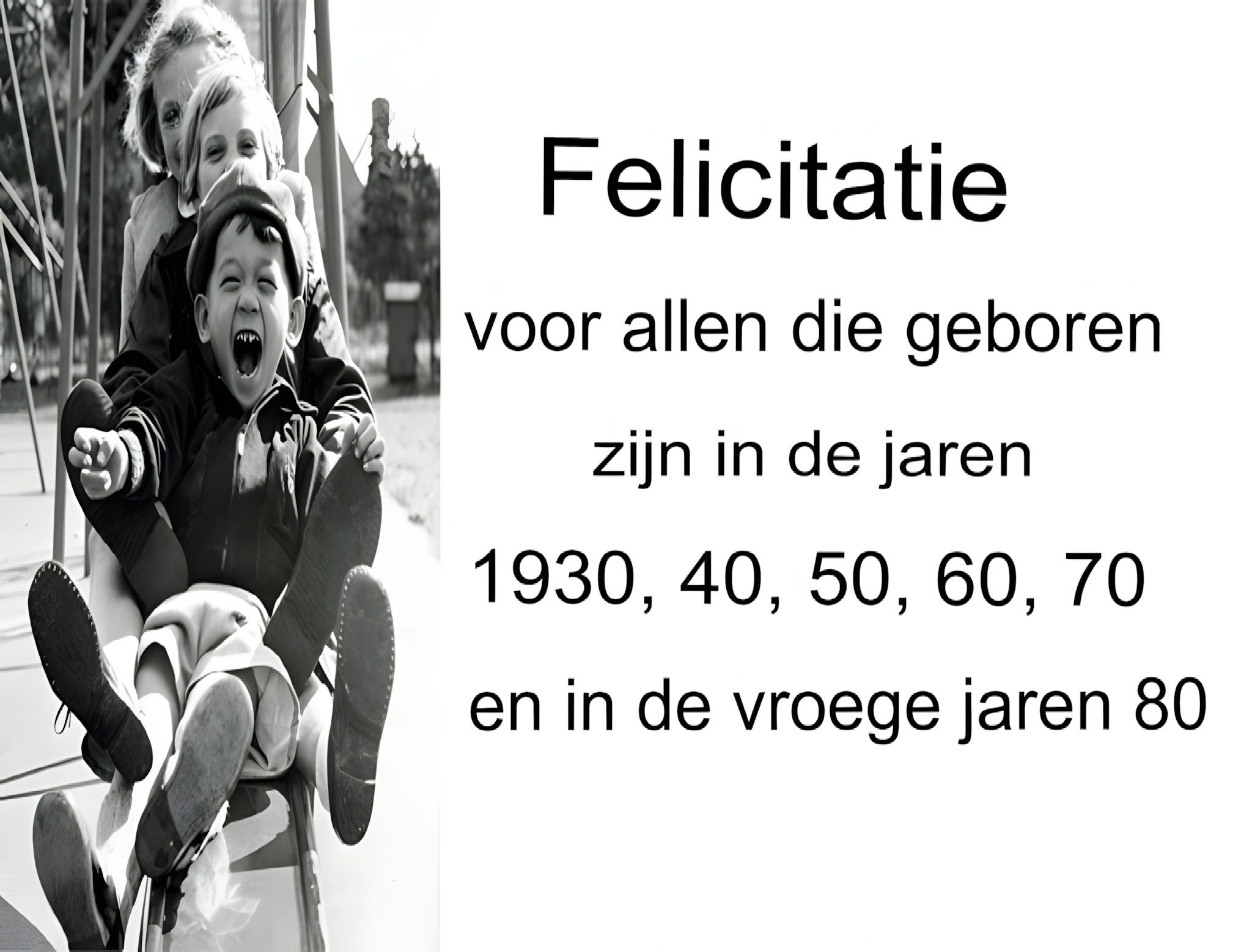 Gefeliciteerd aan iedereen die geboren is in de jaren 30, 40, 50, 60, 70 en begin jaren 80.