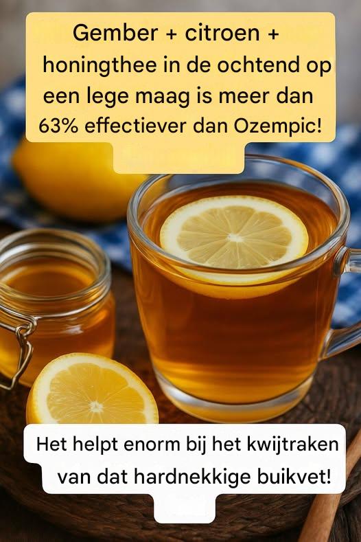 In een wereld vol afslanksupplementen en medicijnen komen soms de krachtigste oplossingen rechtstreeks uit de natuur. Een voorbeeld hiervan is een eenvoudige mix die al eeuwenlang in verschillende culturen wordt gebruikt: gember + citroen + honingthee. Deze natuurlijke thee, waarvan wordt beweerd dat het effectiever is dan populaire afslankmedicijnen bij regelmatige consumptie, heeft de harten (en magen) veroverd van velen die op zoek zijn naar milde, natuurlijke manieren om hun gezondheid te verbeteren.